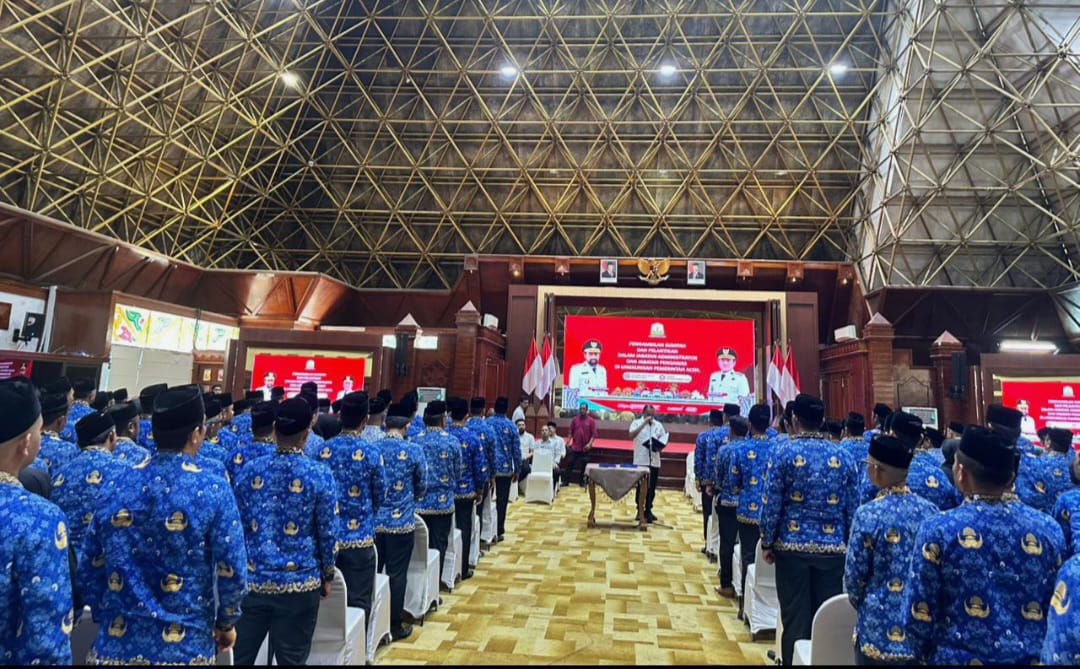 KabarAktual.id – Sekda Aceh M. Nasir, melantik 290 pejabat administrator dan pengawas lingkungan Pemerintah Aceh di Anjong Mon Mata Komplek Meuligoe Gubernur Aceh, Jumat (26/9/2025). Pelantikan itu diharapkan memberi berkah bagi pemerintah dan masyarakat Aceh.
