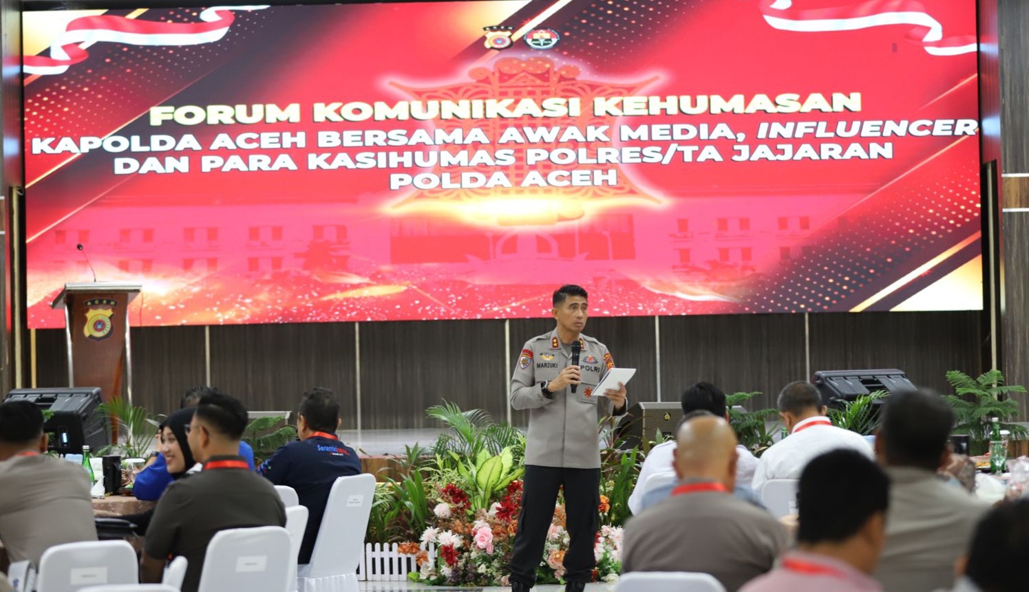 Hal itu disampaikannya pada Forum Komunikasi Kehumasan di Gedung Presisi Polda Aceh, Banda Aceh, Kamis (2/10/2025), yang dihadiri jajaran Kasihumas Polres/TA, awak media, dan influencer.