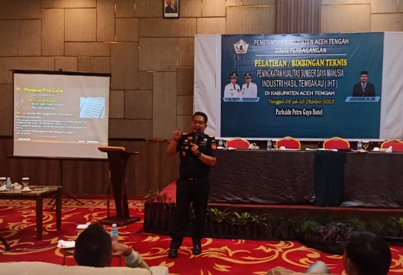 KabarAktual.id — Dinas Perdagangan Kabupaten Aceh Tengah bersama Bea Cukai Lhokseumawe menyelenggarakan Pelatihan SDM Industri Hasil Tembakau selama dua hari, 8–9 Oktober 2025, di Nunang Hall Parkside Gayo Petro Hotel, Takengon. Acara dibuka oleh Asisten II Sekretariat Daerah Kabupaten Aceh Tengah, Jauhari.