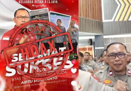 KabarAktual.id — Anggota polisi Polres Aceh Tengah, Aiptu Mugiyanto, secara tegas membantah rumour yang yang menyebut dirinya ketua “Asosiasi Pengusaha Polda Aceh”. Ia memastikan informasi yang beredar di media sosial itu adalah berita bohong (hoax).