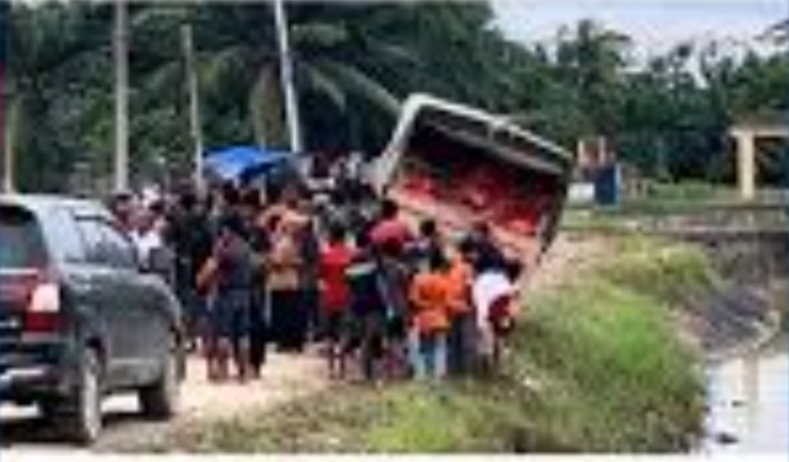 Menurut Jubir, sempat terjadi dialog cukup panas karena bantuan tersebut ditujukan untuk desa lain. “Masyarakat saling berdesakan dan situasi emosional menyebabkan truk terjungkal, kemudian terbakar,” ujar Muntasir.