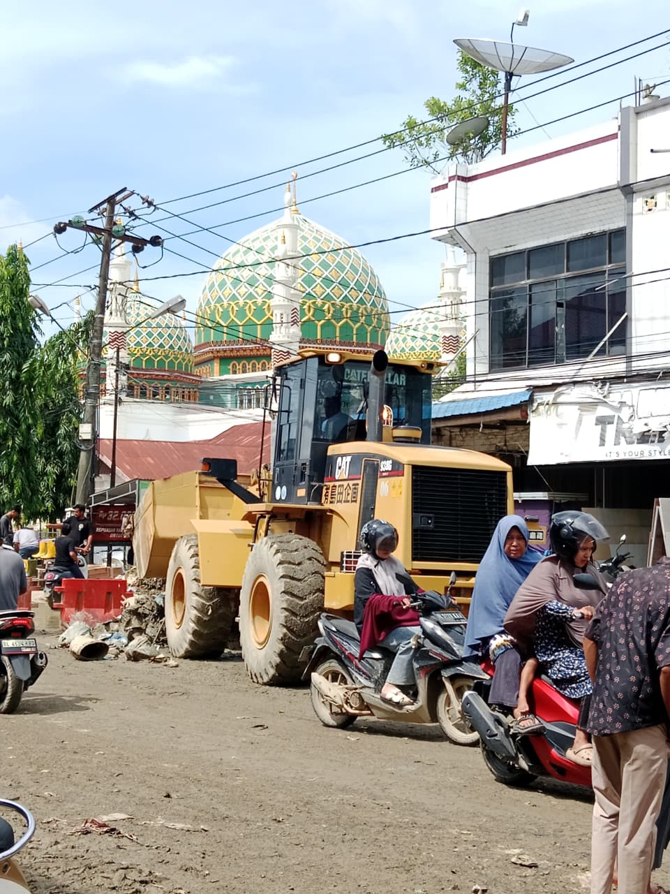 Di sejumlah titik, alat berat masih terus bekerja mengeruk lumpur dan membersihkan tumpukan sampah yang menggunung di badan jalan dan lingkungan permukiman. Lumpur tebal sisa banjir masih menyelimuti pekarangan rumah warga, saluran drainase, hingga fasilitas umum.