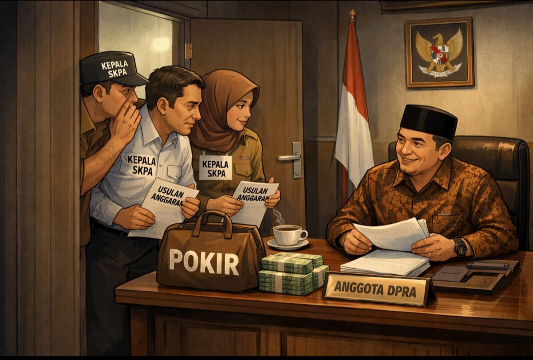 PRAKTIK pengelolaan anggaran di Aceh kian menunjukkan gejala yang mengkhawatirkan. Pokok-Pokok Pikiran (Pokir) anggota DPRA, yang sejatinya dirancang sebagai saluran aspirasi masyarakat, perlahan berubah menjadi instrumen pengamanan anggaran hasil kompromi diam-diam antara Satuan Kerja Pemerintah Aceh (SKPA) dan legislatif.