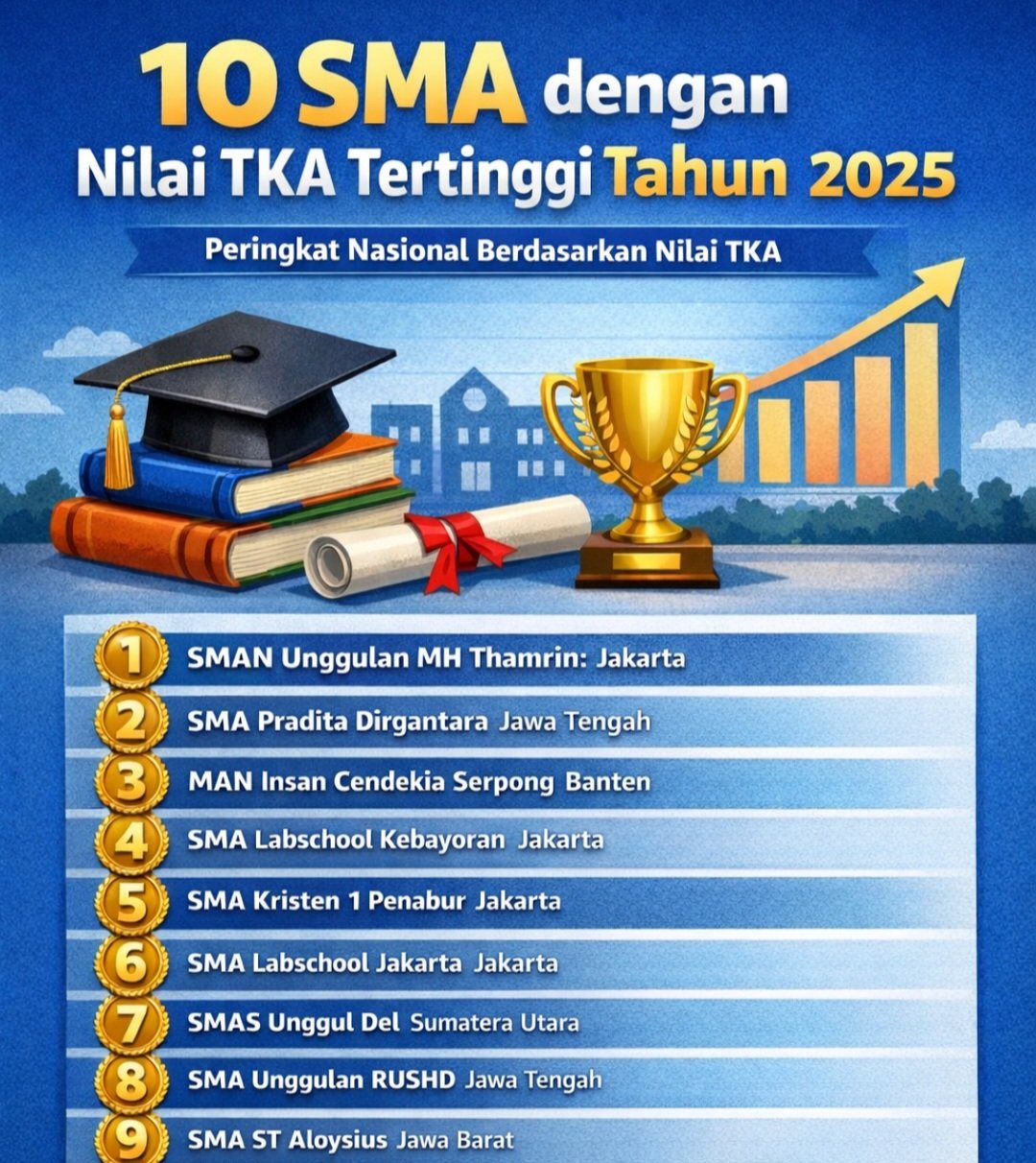 Berikut 15 besar sekolah dengan nilai TKA terbaik tahun 2025.
