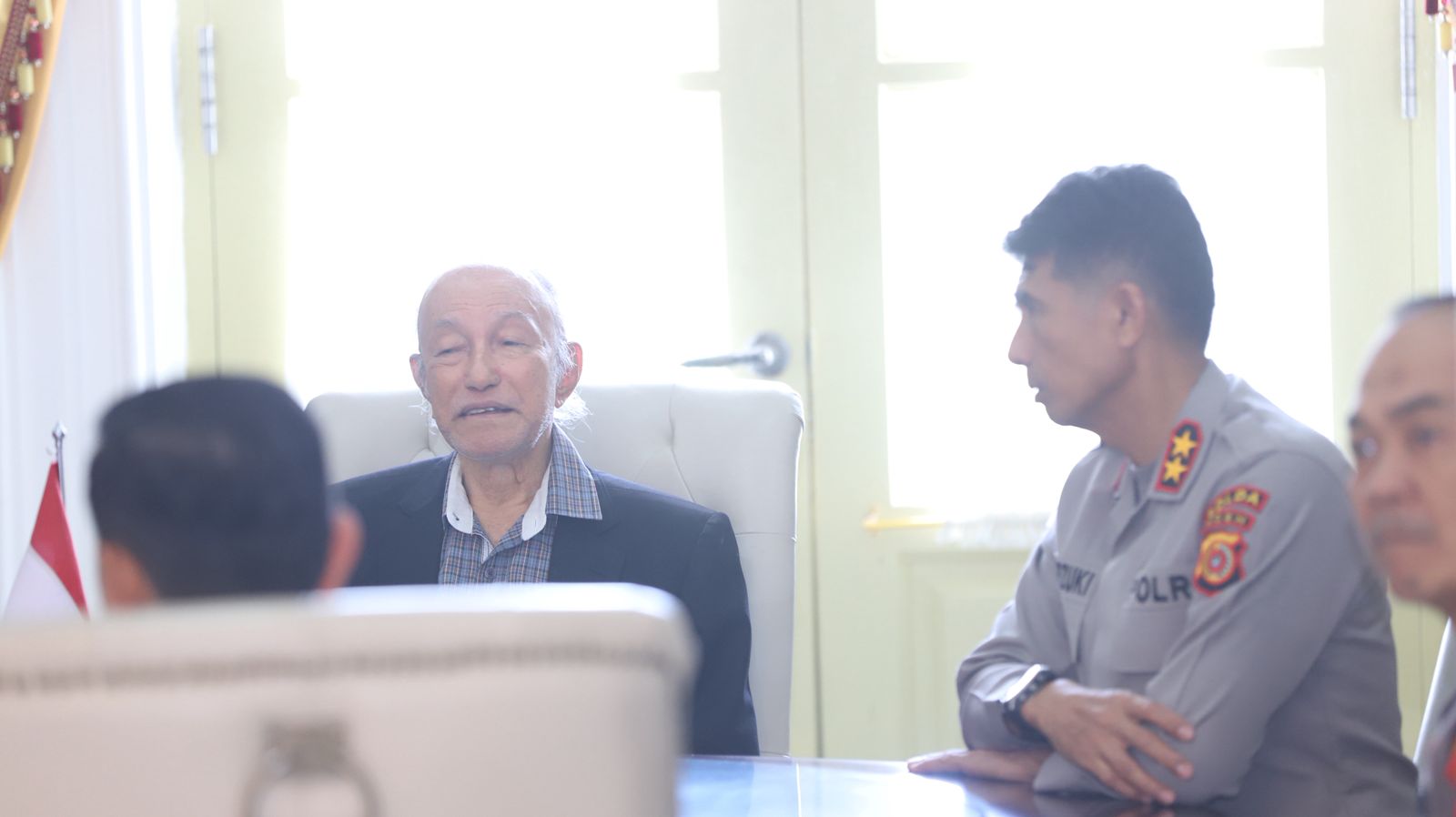 Kapolda tiba di Meuligoe Wali Nanggroe sekitar pukul 11.00 WIB. Ia disambut langsung oleh Malik Mahmud yang didampingi staf khususnya, Muhammad Raviq.