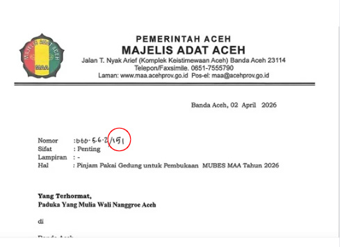 Selain itu, MAA juga menyatakan surat yang dikirim pemangku adat juga tidak tercatat dalam buku agenda surat keluar Sekretariat MAA. Nomor surat 151 yang tercatat di sekretariat justru merupakan surat Ketua MAA kepada Wali Nanggroe Aceh terkait peminjaman gedung pembukaan Mubes 2026.